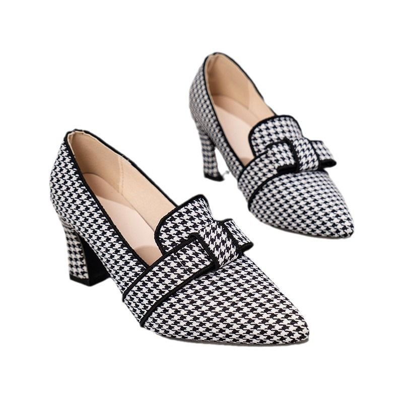 Step up your style game with these chic houndstooth thick-heeled women's shoes. The classic houndstooth pattern gives a timeless and sophisticated look, while the thick heel adds a modern touch. Whether you're heading to the office or out for a night on the town, these shoes will elevate any outfit with their elegant design.