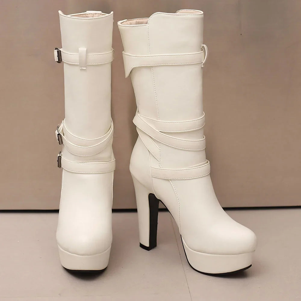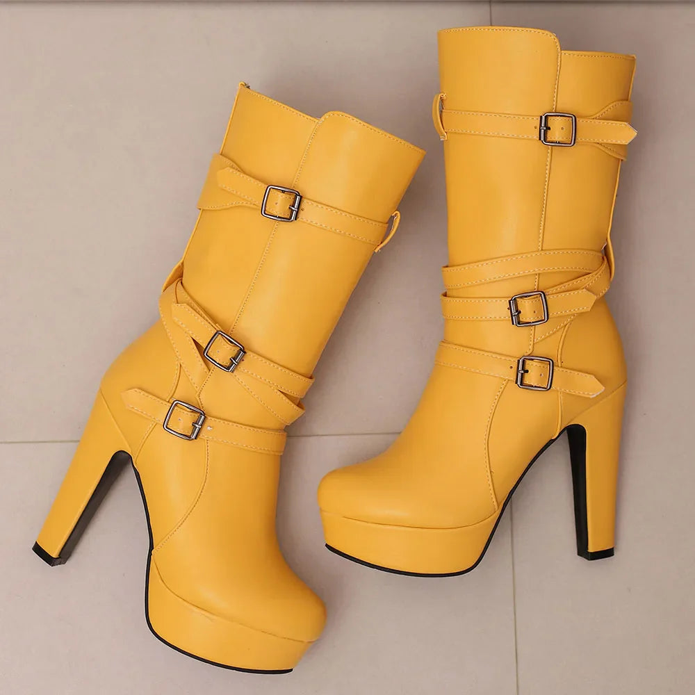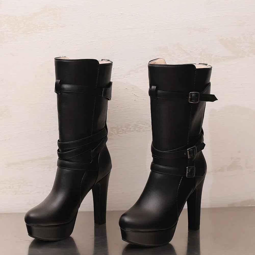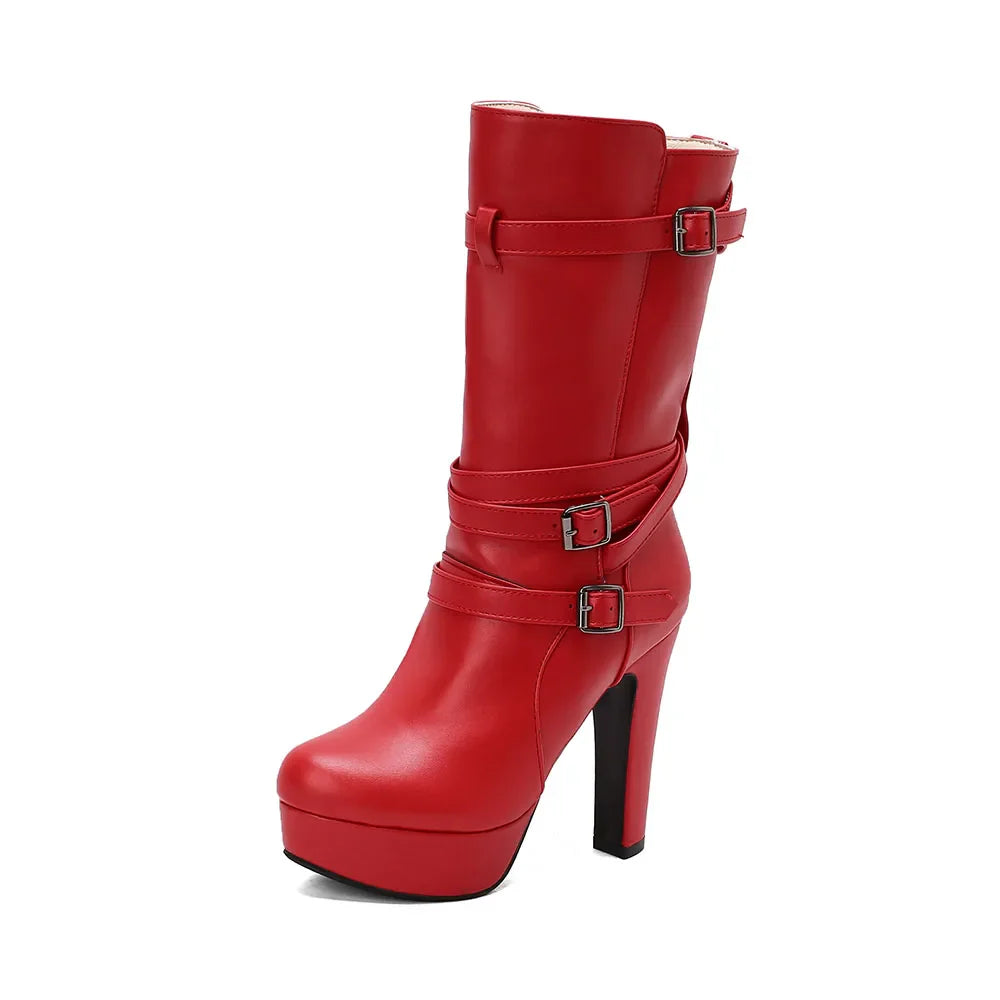 Elevate your style with the Red Punk Ankle Strap Heels that bring a touch of boldness to your wardrobe. These chic heels are your ultimate match for both autumn and winter ensembles, designed to seamlessly integrate fashion with comfort.