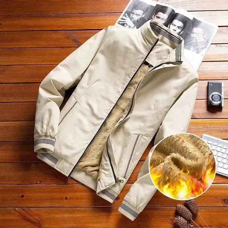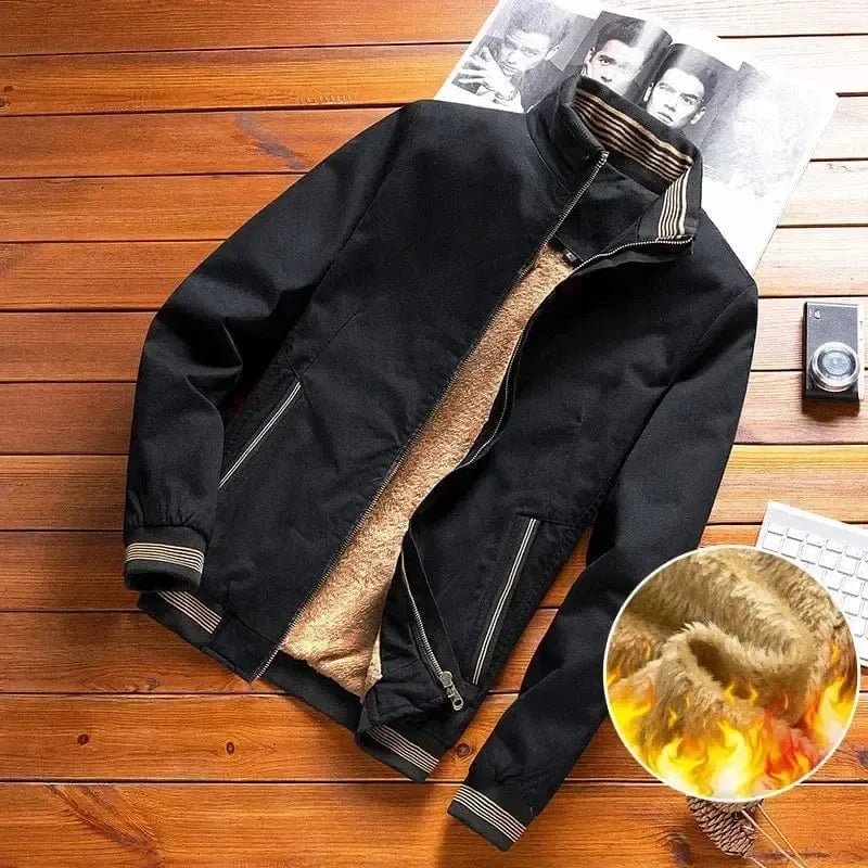 Elevate your look with this Men's Slim Fit Fleece Jacket Bomber from POWQUE URBAN STYLE.