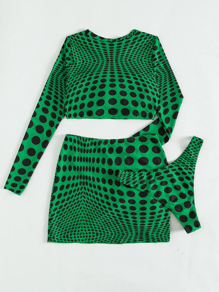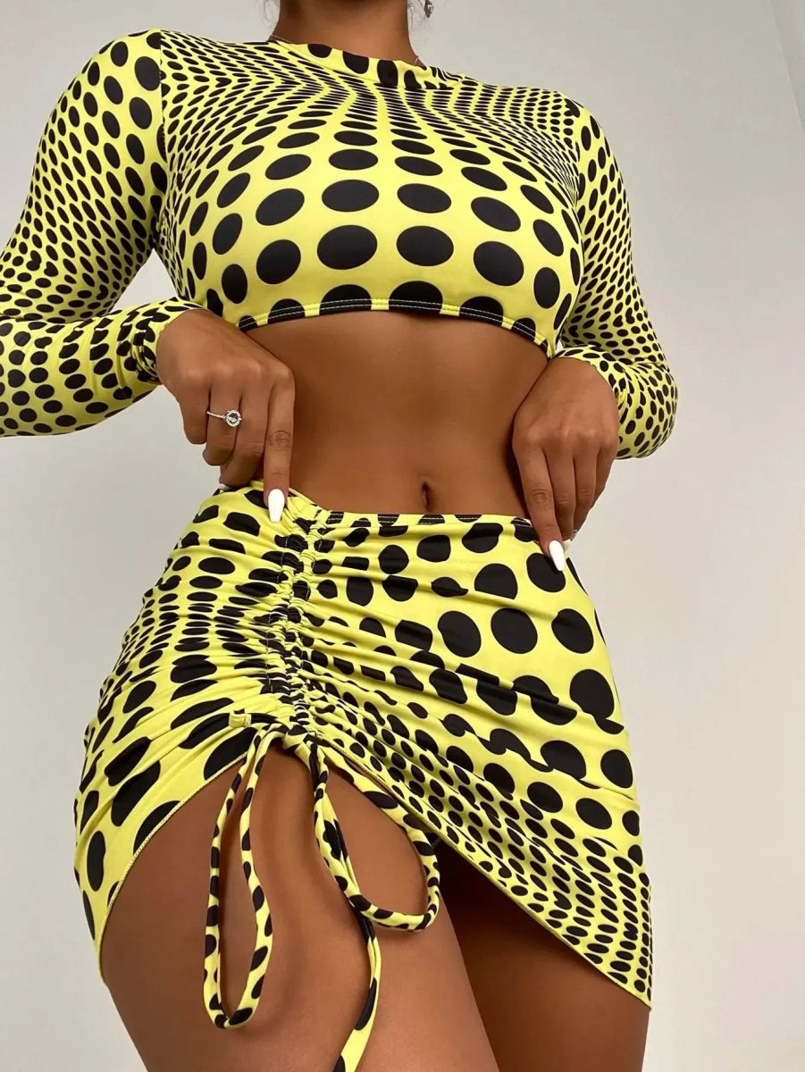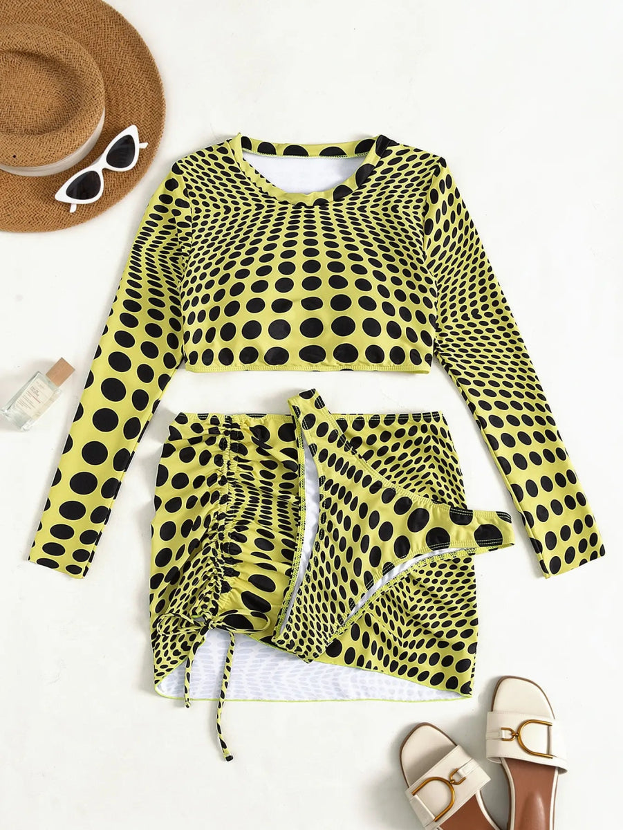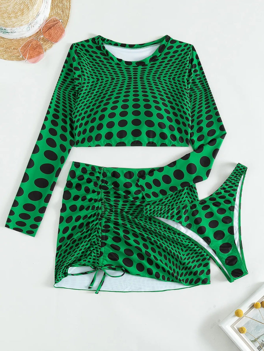 🌊 What is it - Dive into summer with our trendy 3-piece women's bikini set! This exclusive ensemble features a chic long sleeve swimwear top and a stylish drawstring beach skirt, designed for those sunny days by the pool or at the beach. Say hello to effortless summer style!