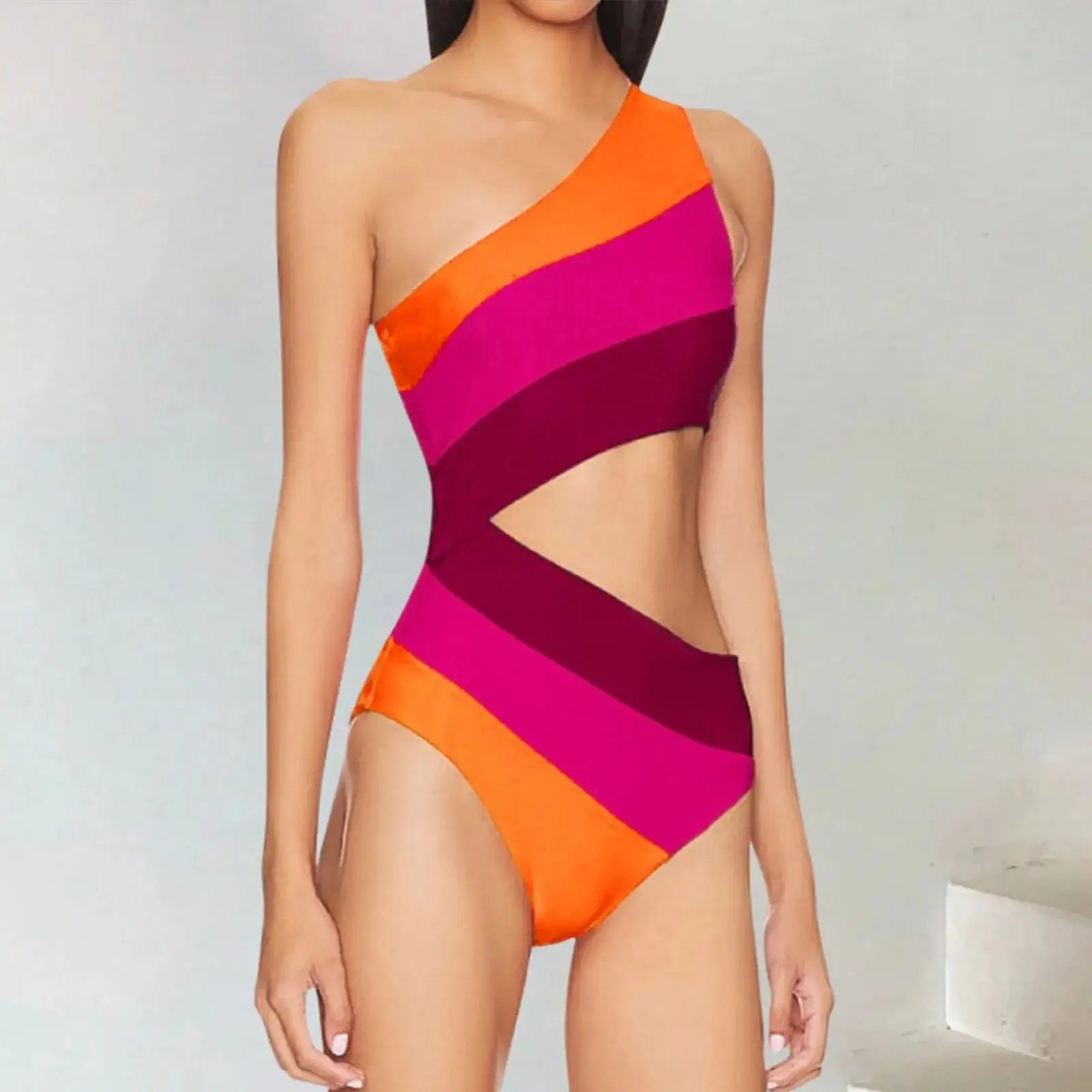 Women's Swimsuit One Shoulder Bathing Suit Cutout Color Block Swimwear