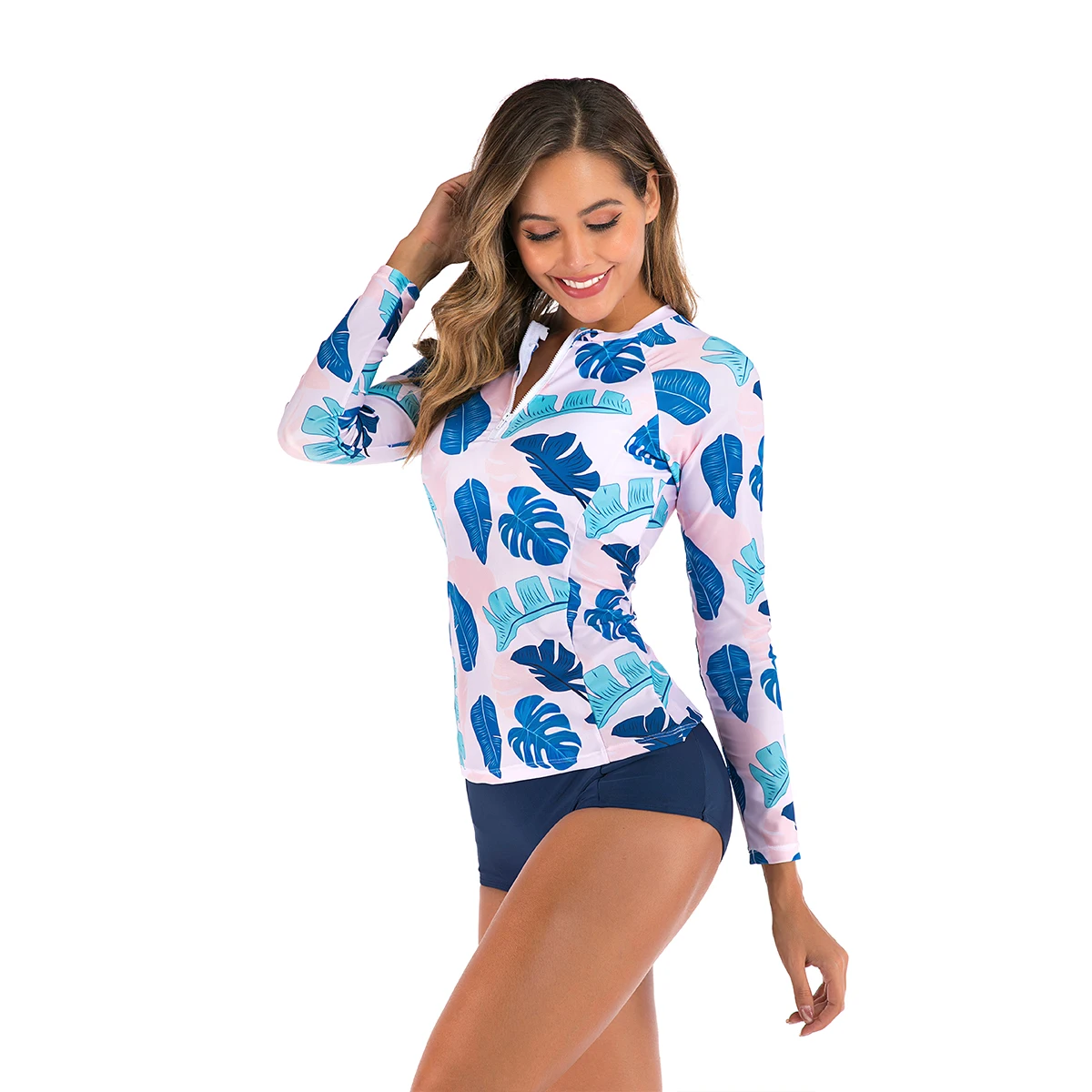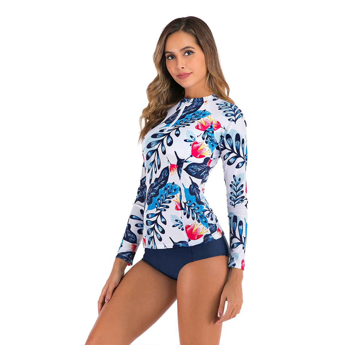 Women’s Long Sleeve Surfing Swimsuit – Quick Dry Two-Piece Rash Guard SwimwearStay protected and stylish in this women’s surfing swimsuit set, designed with a long-sleeve rash guard top and matching bottoms. Made from quick-drying, lightweight fabric, it offers sun protection, comfort, and flexibility for swimming, surfing, diving, or any water sport.