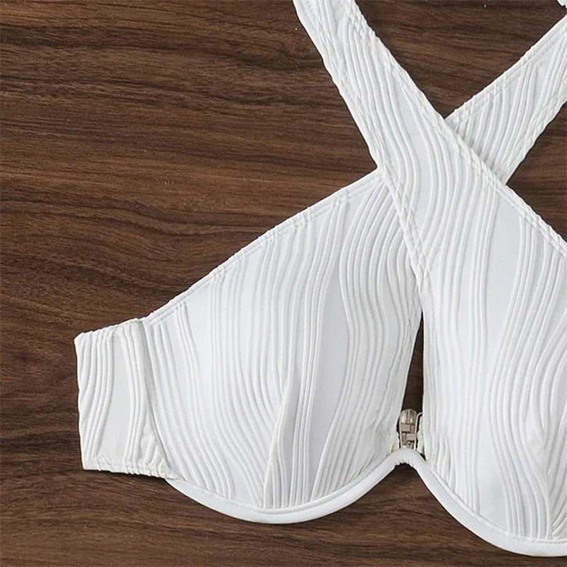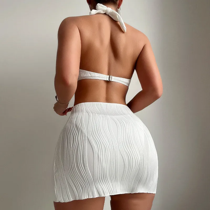 ☀️ Unlock your summer style with our Chic White 3-Piece Halter Swimsuit Set. This stunning bikini features a trendy halter top and chic hollow out details that elevate your beach look, ensuring you feel beautifully confident by the water.