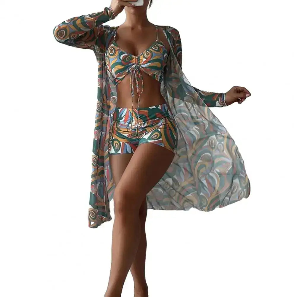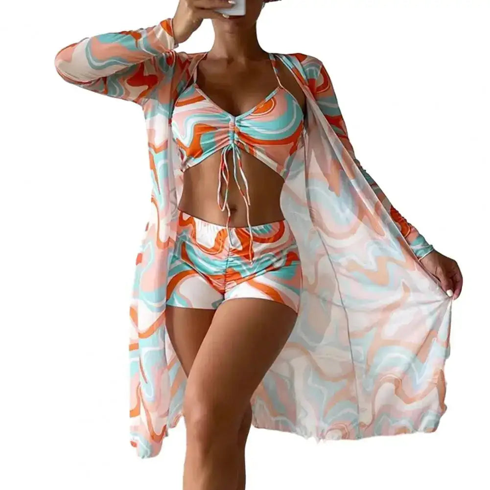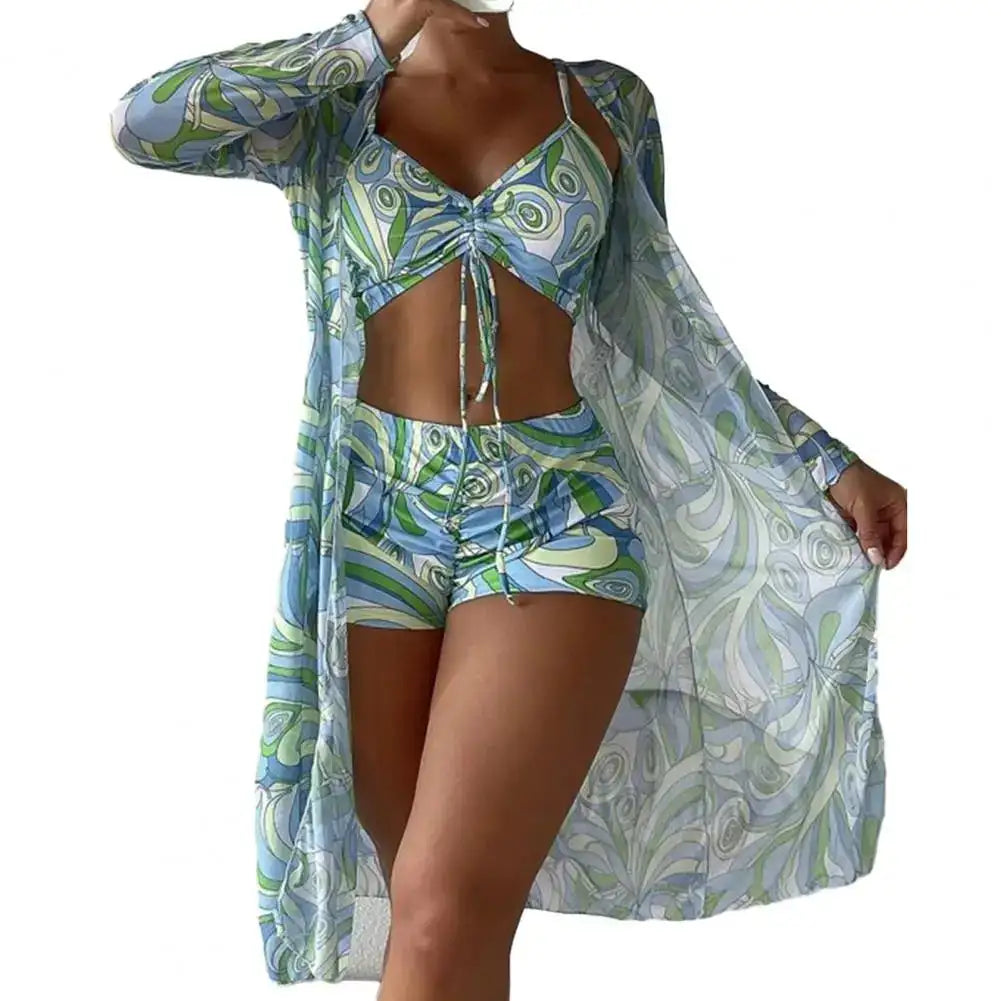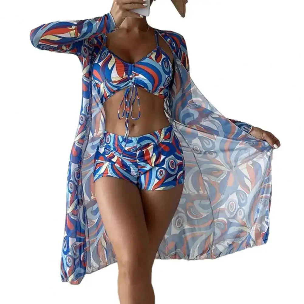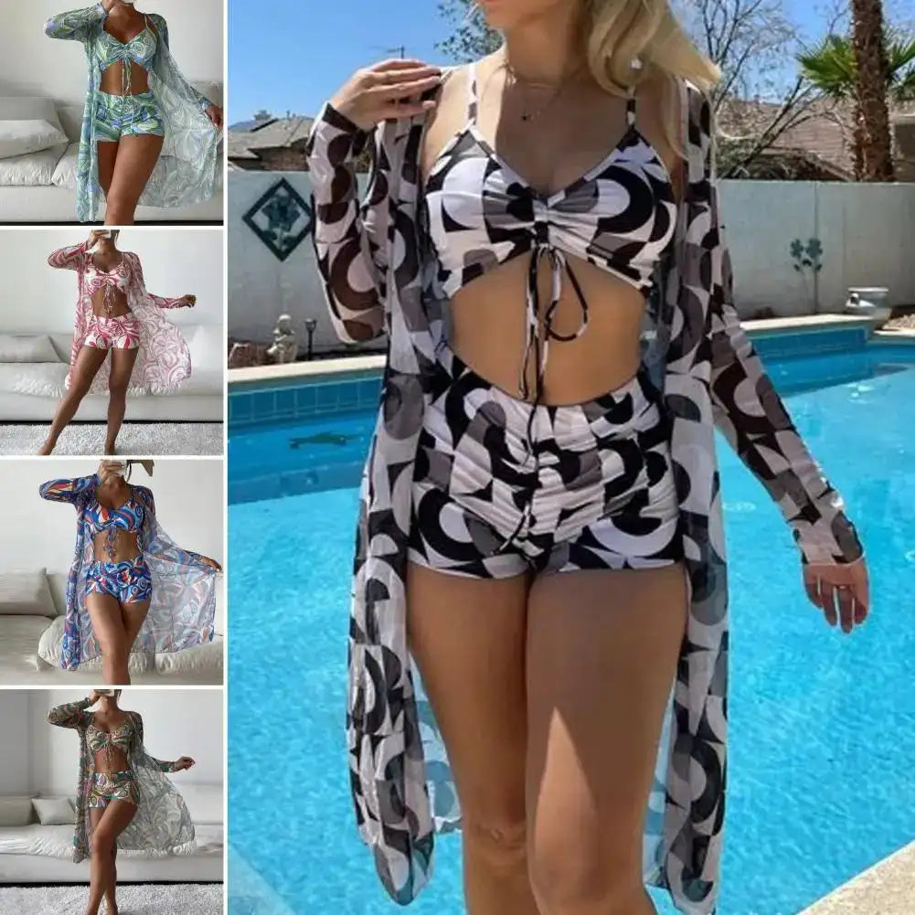 This chic 3-piece set is a beachwear essential, perfect for everything from beach vacations to surfing adventures. The bold floral print combined with refined detailing ensures that you are always the center of attention. A quintessential attire for those who love to make every summer moment unforgettable.