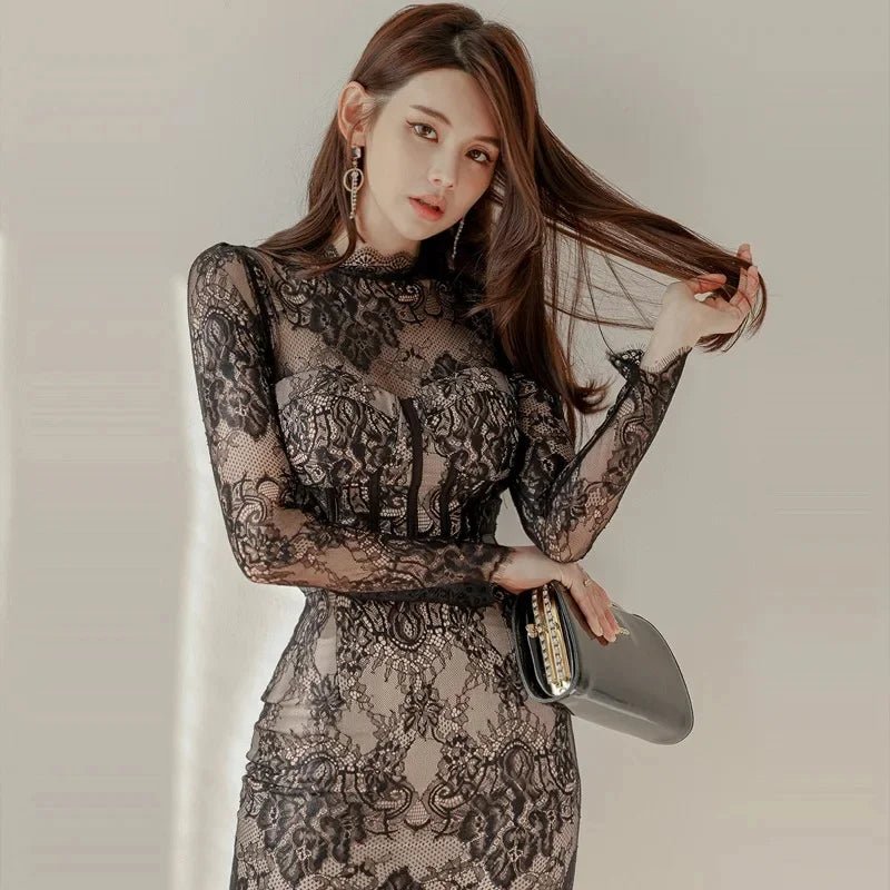 POWQUE URBAN STYLE Elegant Lace Autumn Dress - POWQUE URBAN STYLE