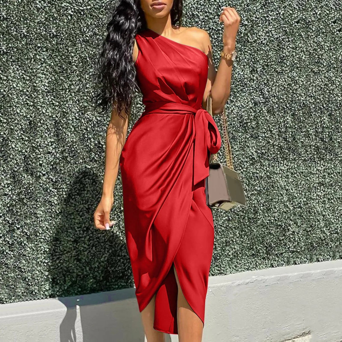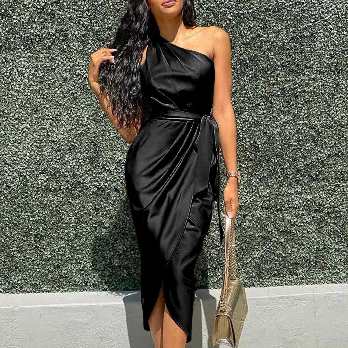 POWQUE Urban Ruffle Shoulder Evening Dress - POWQUE URBAN STYLE